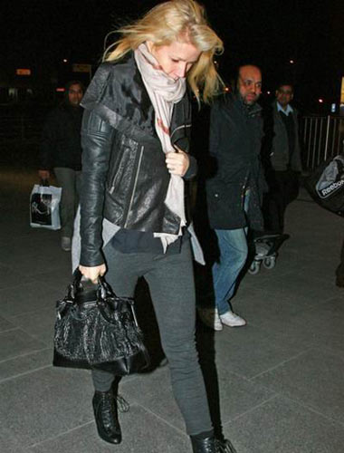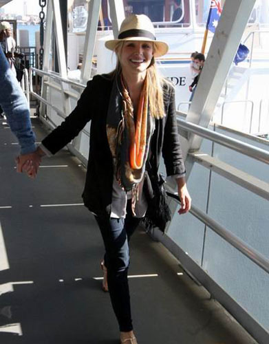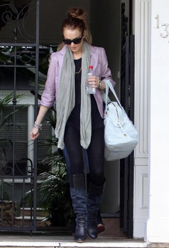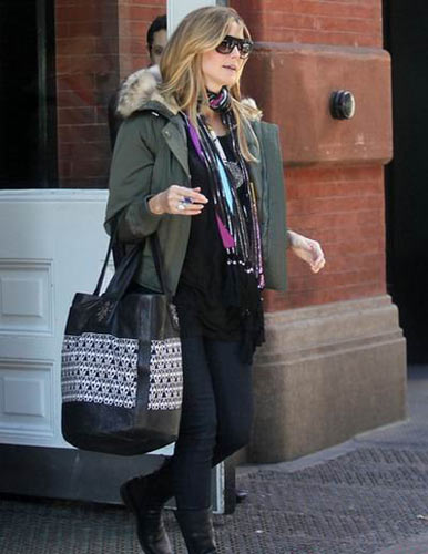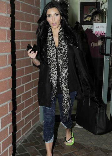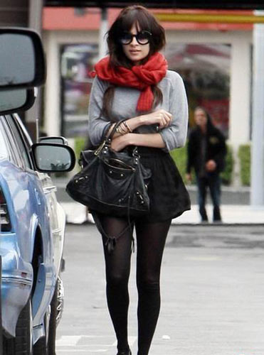 艳丽的服装搭配黑色的小外套加上黑色围巾 绝对的简洁时尚装扮