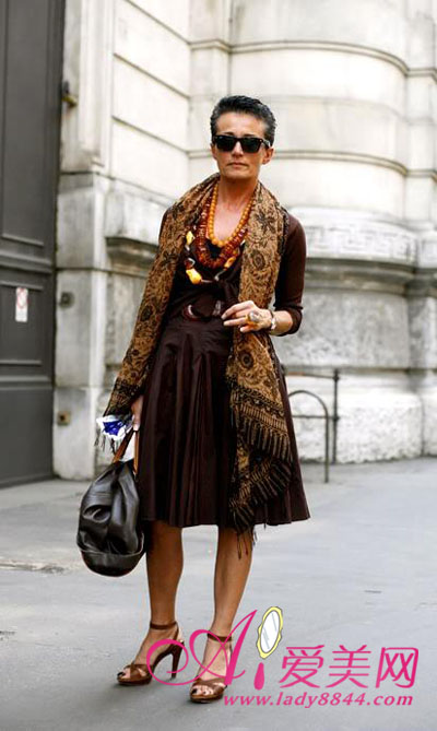 咖色复古流苏长巾给人典雅的感觉。