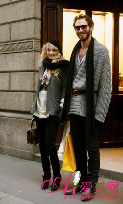黑色长款条形围巾搭配灰色外套,这样的情侣行走街头,是否会引来一片艳羡呢!