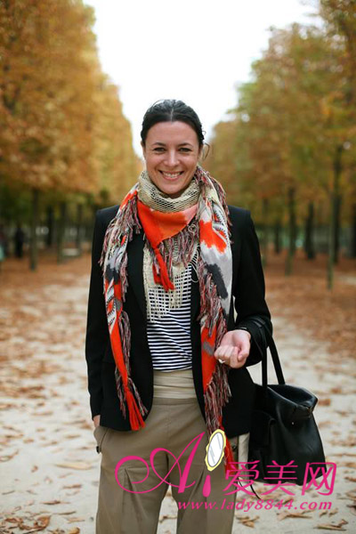 复古印花围巾搭配黑色针织衫,亮点,亮点,有木有?