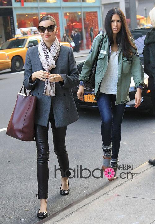 当地时间11月19日,米兰达·可儿 (Miranda Kerr) 和友人一起在纽约街头购物。天气渐冷,米兰达·可儿 (Miranda Kerr) 穿上了大衣和皮裤,用浅色动物纹围巾裹住脖子,但为了打造轻盈利落的整体效果,米兰达·可儿 (Miranda Kerr) 仍然穿着一双平底芭蕾鞋,露出漂亮的脚踝。