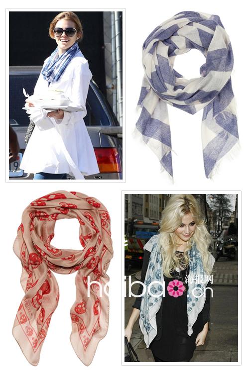 生机盎然的春季需要多些浪漫单品来丰富搭配,轻盈迷人的雪纺印花围巾成了最实用和最易用的热门配饰,深受报友们喜爱的女明星希拉里·达芙 (Hilary Duff) 、皮格茜·洛特 (Pixie Lott) 、安娜丽尼·麦考德 (AnnaLynne McCord) 、麦莉 (Miley Cyrus) 等都在2011春季用围巾来提升出街造型的时尚度,海报Girl们是否也想和她们一样用围巾来增添春装搭配的浪漫风情呢?