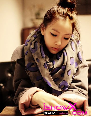 蓝紫色花样的一款围巾,不算厚的料子围着特别舒服,把围巾围出比较有层次的感觉是最重要的,嘟嘟在胸前很有立体感哦。