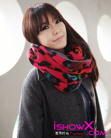糖果色套头围巾,围两层有厚厚的感觉,颜色上也很好看,尤其是搭配了黑白色的衣衣,更加突显了围巾的效果。
