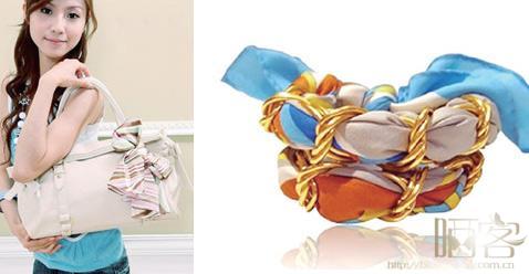 拆下来是一条漂亮的丝巾,绑上去就成了独具一格的腕饰,这样的创意来自一点点的巧心思,而且制作起来非常简便。