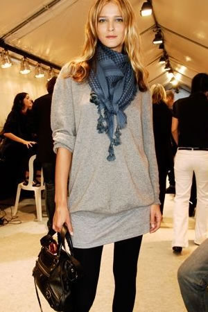 这个冬季色彩比较暗淡,灰黑配是明星和模特共同选择的搭配色系。