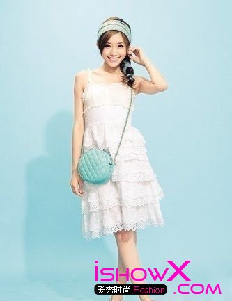 融入碎花围巾的斜编发,增强独特气质,令淑女装扮更加清新精致。