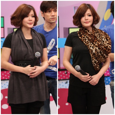 翊萱示范了两套围巾直接单穿的风格,因为头发颜色,豹纹的围巾配合头发的曲线,作一个侧面斜披就可以有着浓浓的欧洲风味。