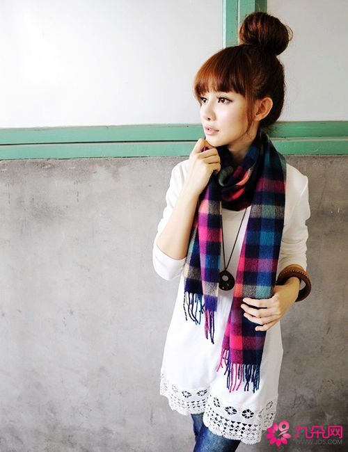 彩色格纹围巾,是属于纯情女生们的独家单品,知性恬静,搭出甜美的青春气质