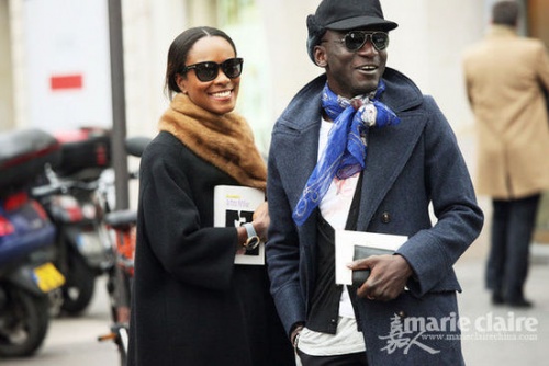 男人戴丝巾的话会很娘么?看时尚达人为你演绎,由于肤色的衬搭让宝蓝色看上去并没有那么俗艳,即使是纱制料子也非常具有立体效果。搭配厚厚的花呢子对比起来更衬气质。与旁边美女的气质相符,皮草与丝巾,绝妙的搭配。
