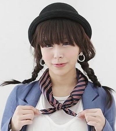 俏皮的麻花辫搭配条纹丝巾,齐刘海的减龄发型很有学院派的味道。