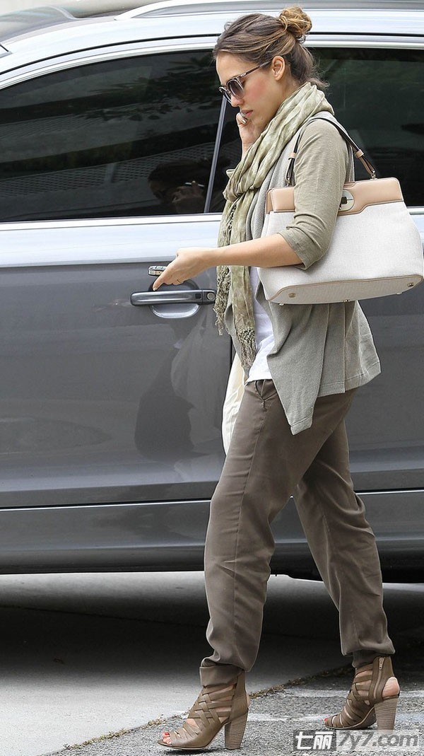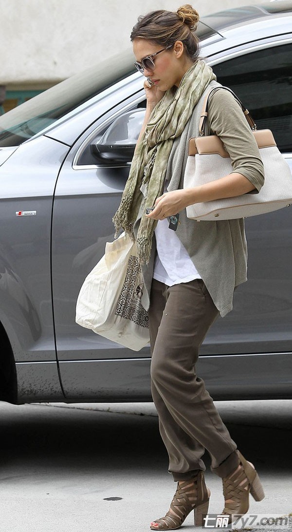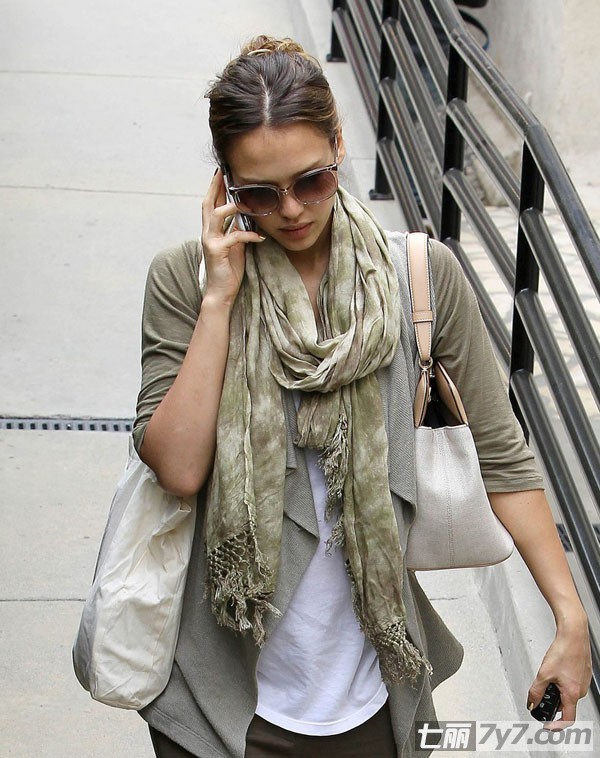 围巾,时尚的展现,不要认为围巾只能在天冷的时候才能秀出来,不要以为春夏季就不能佩戴围巾。春夏大围巾的系法图解,让歌后黎安·莱姆丝与辣妈杰西卡·阿尔芭来教您如何搭配吧。