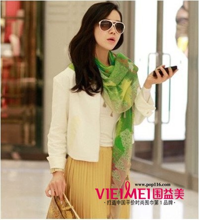 微暖季节,如果你觉得春装太过单调,那就加一条别致的丝巾作为装饰吧,不仅可以应付夜晚变凉的温度,还可以时尚有型,今天就为大家推荐几款小清新丝巾搭配典范。
