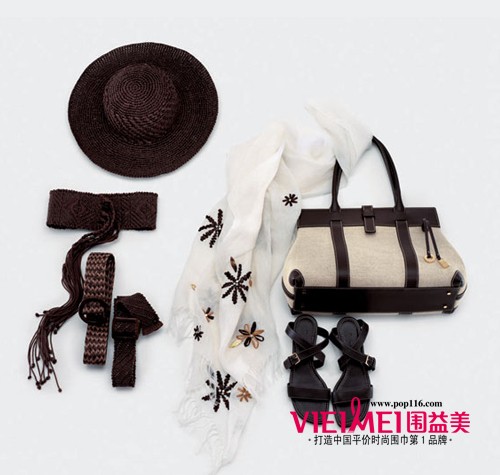 在轻松的一围一搭之中,就搞定了一身得体的春装,这样的服饰搭配方案,最为适合工作繁忙的OL。loropiana2007春夏新款服饰中,大量的运用了围巾与服饰相搭配。无论波西米亚风格围巾与白衬衫的搭配,还是复古风格围巾与套装搭配,围巾的出现无疑让整体服饰显得更加得体,也更有时尚感。