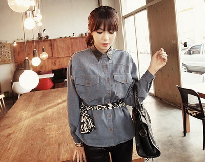 boys feel的宽松牛仔衣用,印花丝巾作为腰带,显身材之余也成了造型亮点。