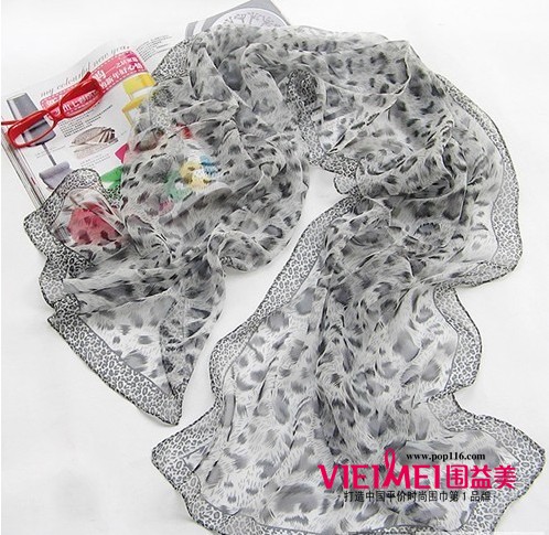 在韩国非常流行的小豹纹图案丝巾,轻薄型印花披肩也可以当成空调房里的披肩使用。