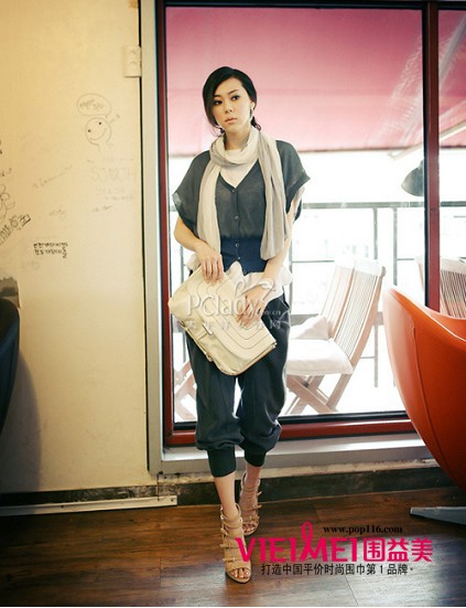 07 蝙蝠袖的宽松上衣混搭7分裤,混搭一条素色的丝质围巾,增加了上身穿衣的层次感,休闲中不失温婉的美丽气质,丝巾的作用十分点睛。