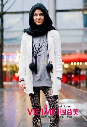 紫色花围巾 让黑色的装扮也充满生机与活力