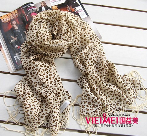 在韩国非常流行的小豹纹图案丝巾,轻薄型印花披肩也可以当成空调房里的披肩使用。