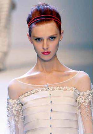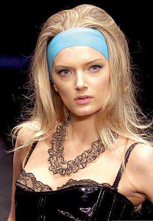 选择两个极端——要么宽大,要么细致。较大的比较适合MarcJacobs,Burberry或者D&G的风格,宽大的发带会成为一个吸引注意力的亮点。然而,在Valentino的秀台上,模特却佩戴了两个闪亮、鲜红的细发带,两条发带间距1英寸左右,戴在离发际线非常靠近的位置。这带来了两种非常不同的感觉:较大的能把周围的头发包裹住,发带看起来非常的运动和朋克,而较细的发带则更有女人味。