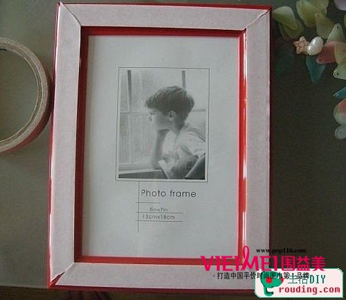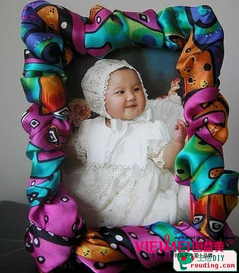 将旧相框表面粘好双面胶,把长丝巾卷成长条,随意粘在相框上就好了。