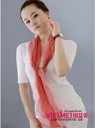 有的美眉可以会觉得天热就没有必要戴围巾了,其实,也并不一定说戴围巾就要看天气。可以随你的心情,你的服饰随意搭配,只你你搭配的妙,还怕没有回头率