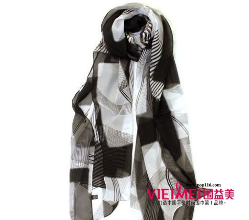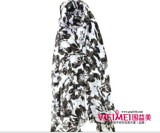 黑白花朵围巾,看似简单的黑白两色组合,然而却有一种水墨印花的感觉,带来典雅、摩登的时尚,是一条百搭款围巾。