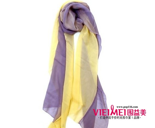 浪漫的紫色加上亮丽的黄色,轻薄的感觉,飘逸、清纯,搭配暗色调衣服,起到画龙点睛的效果,在暗淡的冬季,点亮你的生活。