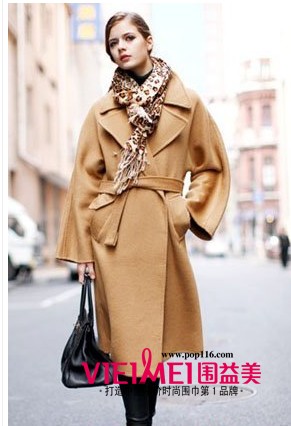 豹纹元素在今年再次席卷时尚圈,而这一款豹纹风格的流苏围巾,是非常经典的款式。在驼色的长款毛呢外套中搭配一条豹纹围巾,展现时尚女王的风格。这一款围巾在许多服饰中都可以搭配,例如可以搭配白色上衣、牛仔短裤和卡其色的风衣外套,让服饰搭配显得更具今冬的潮感。大家可以作为参考。