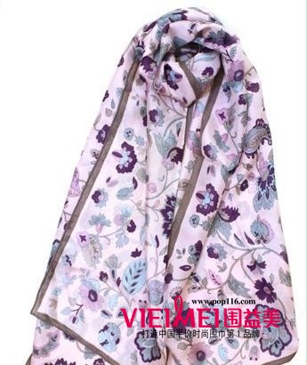 浪漫紫色印花围巾,带来江南水乡的浪漫感觉,甜美可人,妩媚性感,手感也相当顺滑,带来脖颈间舒适的感觉。