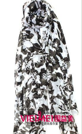 黑白花朵围巾,看似简单的黑白两色组合,然而却有一种水墨印花的感觉,带来典雅、摩登的时尚,是一条百搭款围巾。