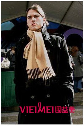 B.把围巾从空隙中抽出来。特别提醒 这种结给人以反叛不羁的感觉,如果你觉得够cool的话,这种打法可以试试看。