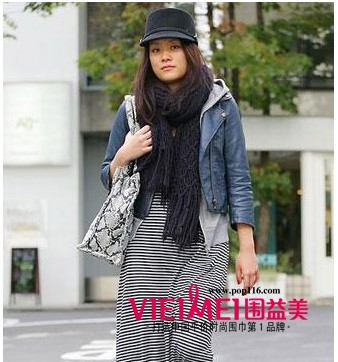 粗棒针织围巾充满流浪的味道,帅气中性风范儿十足。