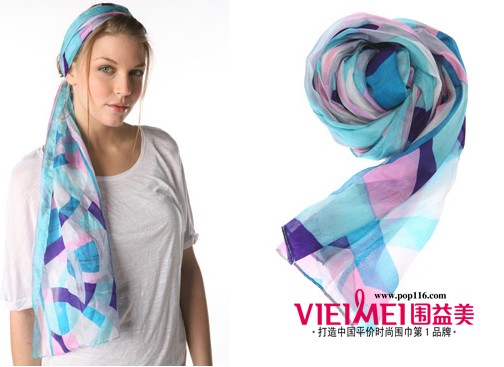选一条又窄又长的花色纱巾,折三折之后将它绑在头上,简单的系一个结在散披的头发上面,就可以完成这个充满复古风情的发型,将长长的丝巾搭在一侧更是别具风情。