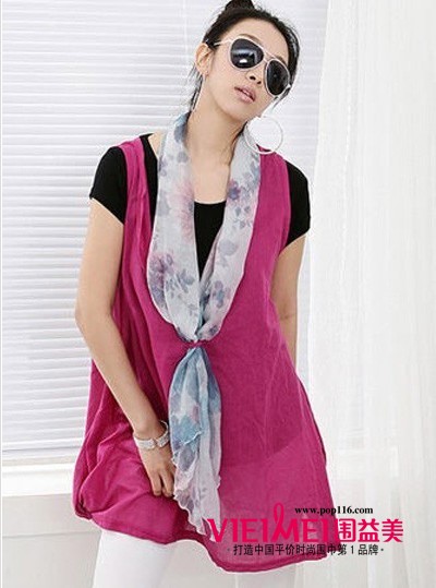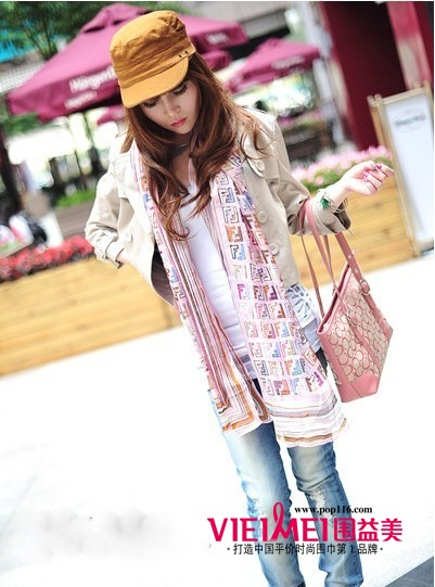 粉色系的丝巾更显柔美感,如果你觉得自己还不够女人,系上一条这样的丝巾准没错了。