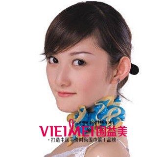 最好选用质地富有张力的丝巾,可以保证系后的丝巾领结形状美丽。用带有镶边的丝巾,更能突出此种系法所特有的富有层次的丝巾褶。搭配与花边颜色相近的长裙,更显娇柔甜美。