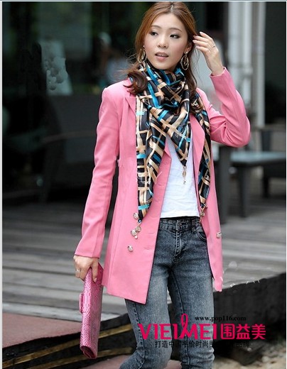 早秋的丝丝凉意,长衣长裤的打扮在街头已很普遍。一条简洁的牛仔裤,搭配一件白色T恤,你是否觉得太简单了、太普通了?想要在早秋季节扮时尚,不妨让一些配饰来帮您。最近流行一种三用丝巾,除了系在脖子上外,还可以系在头上当头巾,扎在腰上当腰带。像亮红色、紫色、白色、淡蓝色等,易于和牛仔裤T恤搭配,营造整体穿着的亮点,都是饰品专柜上卖的比较火的颜色。