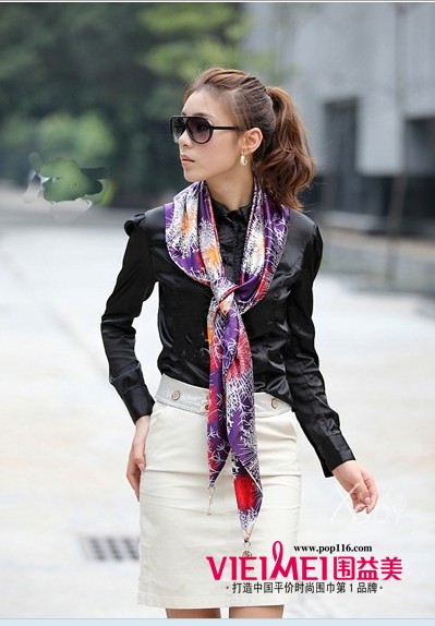 一条丝巾就是一种情绪,总在不经意间轻轻流露,每一次佩戴都有不同的感受。它已经成为一个不离不弃的朋友和一段栩栩如生的记忆。你不必拘泥于现有的丝巾系法,让规则抹杀了丰富的想象力和创造力。根据自己的情绪,你可以随心所欲地把这一抹亮色点缀在自己身上。系在腰间、围成头饰、挂在胸前、绕在手臂上,甚至缠在书包上,只要它好看,只要你开心。
