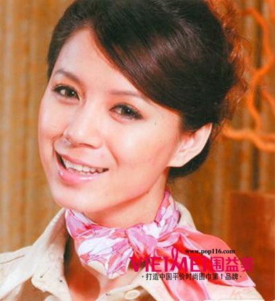 从额头到下颌,脸的宽度渐渐变窄的倒三角形脸型的人,给人一种严厉的印象和面部单调的感觉。此时可利用丝巾让颈部充满层次感,来一个华贵的系结款式,会有很好的效果。如带叶的玫瑰花结、项链结、青花结等。