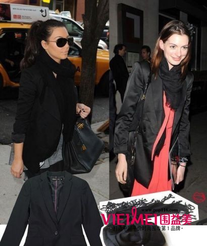 都爱素色棉纱围巾,百搭又时尚,搭配黑色西装,打造奢华Look