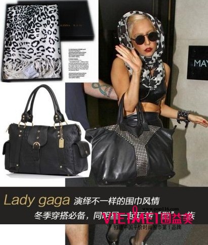 lady GAGA这造型也是亮点啊~~围巾也可当头巾用~!头巾似的系法也很讨巧,只不过请小心使用,谨防自己变村姑!