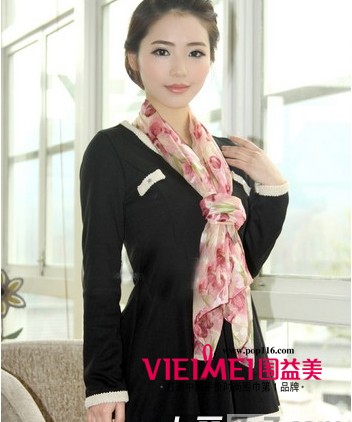 柔软飘逸的雪纺面料,款式简洁,佩戴舒适轻便的丝巾,简单的搭法,更是起到了拉长身形的效果。