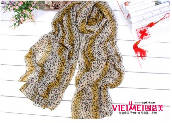 编辑点评:在韩国非常流行的小豹纹图案丝巾,轻薄型印花披肩也可以当成空调房里的披肩使用