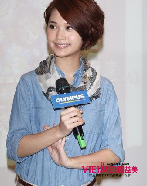 杨丞琳这条拼接花纹的丝巾比较淑女,是春秋天也可以选择的款式,而且戴的方法可以根据服装风格来选择。这件牛仔衬衣色彩清爽,样式休闲,因此将丝巾随意的系成一个圈搭在衣领上,营造出轻松的感觉。