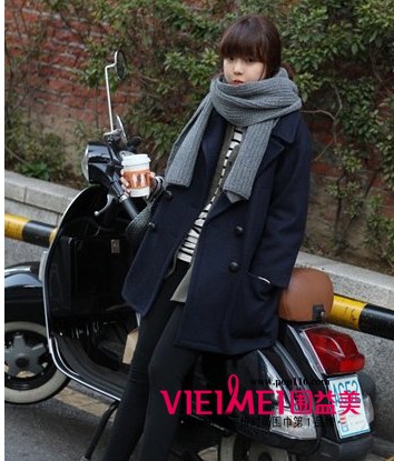 这一款毛毛与黑色毛线拼接而成的围巾,是今冬围巾中十分流行时尚的款式,在《女人我最大》中也有介绍过类似的款式。灰色的长款外套搭配白色T恤,这是冬季十分简单的搭配方法,而黑色铅笔裤与短靴的搭配也可以在视觉上拉长腿部线条,达到显高显瘦的显高。加上一条今年十分流行的时尚围巾,而简单搭配的服饰也可以更加突显出围巾的别致与独特,整体的搭配简约协调。