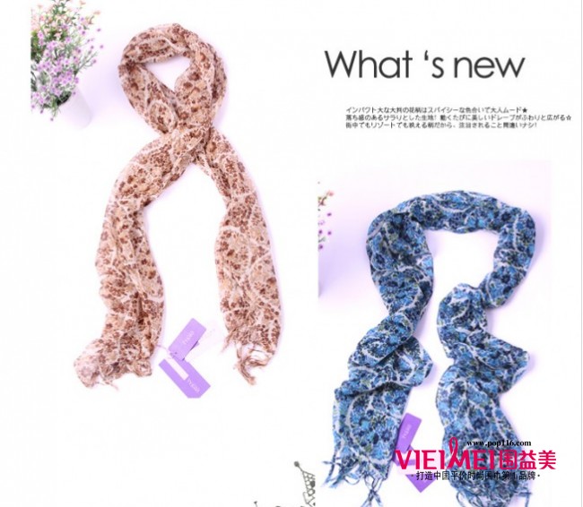 雪纺材质款印花丝巾,正适合初秋季节,可以随意的围在脖颈上,制造混搭的效果,漂亮的花色图案设计,时尚又大方,搭配衬衫很有知性味道。隐隐的哑光感,提升质感,更提升气质,简单的绕2圈带就可以了哦。比较长的款式,两头搭下来带也很漂亮,围巾上的卡其色印花图案跟白色T恤很搭,色感丰富、饱满。这一季,围巾已跳出了御寒作用,更多的是作为装饰的时尚重磅单品。一款唯美出众款式的围巾,能为你的搭配起到画龙点睛的作用。如何让围巾与服饰搭配得夺人眼球又时尚潮流,一起看看吧。