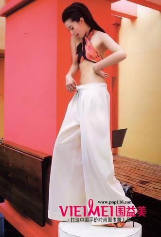 难得见到这么性感的冰冰,身材曼妙,霸气外露。这款丝巾主要是交叉系法,简单的性感肚兜式上衣,搭配白色宽直筒裤,大气,时尚。