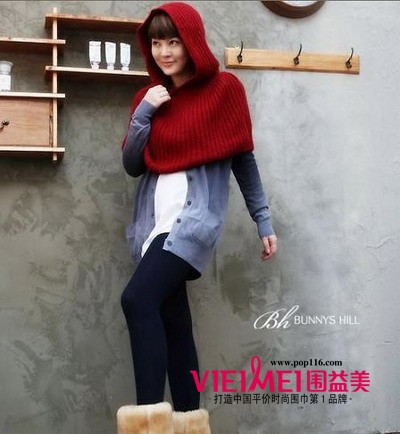 搭配建议:白色打底,外搭一件紫色开胸针织衫,显出女性的成熟感,深蓝色的保暖Legging搭配时髦的雪地靴,个性味十足,最后搭配一件大红色的套头披肩,时尚却不失稳重。