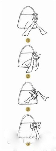 1:将丝巾随意的对折成长条绕过手包其中一个提手