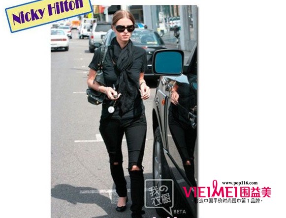 Nicky Hilton(妮基-希尔顿),从头到尾的黑色丝毫不显沉闷。细节的处理让搭配看上去十分舒服。 Sienna Miller穿衣向来受到大家追捧,豹纹的围巾随意的围在脖子上,把原本看似平凡的黑白短袖T衬托的有模有样。墨镜的